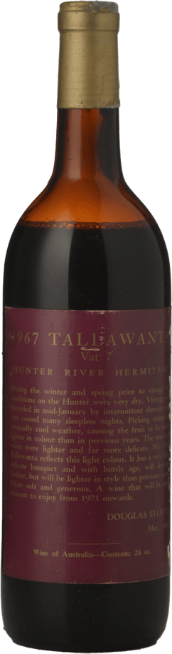 ELLIOTTS Tallawanta Vat 7 Shiraz, Hunter Valley 1967 Bottle