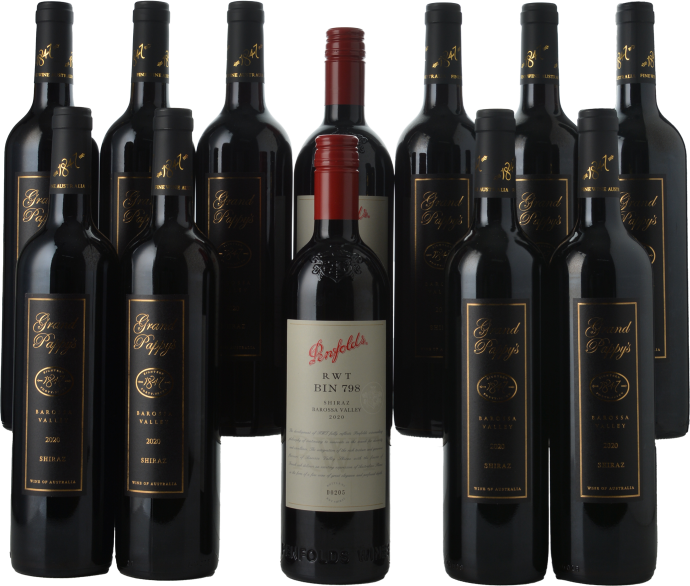 Your pack Includes: Ten bottles of 1847 Grand Pappy’s Shiraz from 2020 Two bottles of Penfolds RWT Bin 798 Shiraz 2020