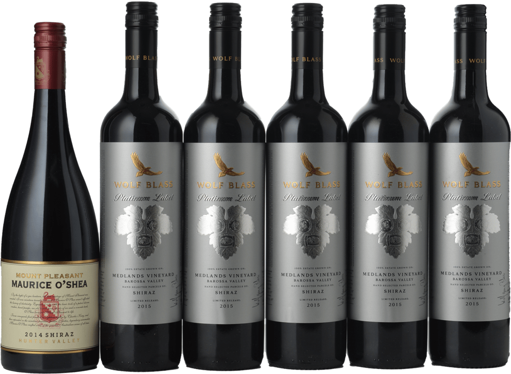 In this 6-pack, you will find: 5 x Wolf Blass Wines Platinum Label Medlands Vineyard Shiraz, Barossa Valley 2015 1 x Mount Pleasant Maurice O'Shea Shiraz, Hunter Valley 2014