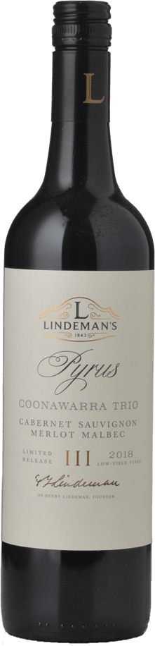 Lindemans Coonawarra Pyrus is a Bordeaux-style blend sourced from the centre of Coonawarra's Terra Rossa strip, including the century old Nursery Vineyard, one of the oldest in Coonawarra. Its backbone is old vine Coonawarra Cabernet, up to 80%, fleshed out by smaller proportions Merlot, Malbec and/or Cabernet Franc.