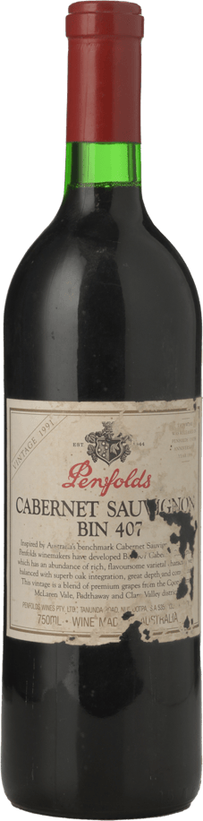 PENFOLDS Bin 407 Cabernet Sauvignon, South Australia 1991 Bottle