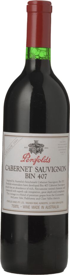 PENFOLDS Bin 407 Cabernet Sauvignon, South Australia 1991 Bottle