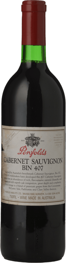 PENFOLDS Bin 407 Cabernet Sauvignon, South Australia 1991 Bottle