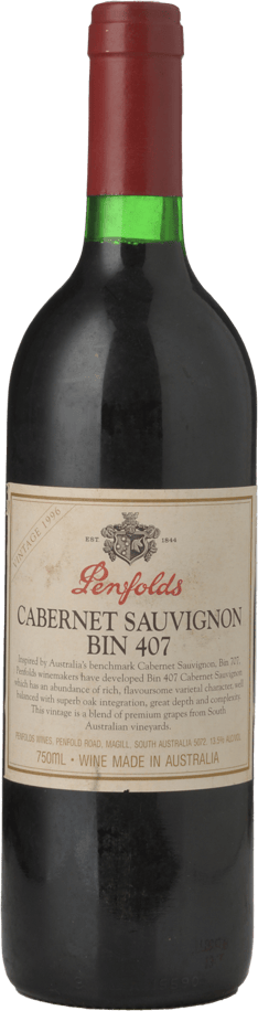 PENFOLDS Bin 407 Cabernet Sauvignon, South Australia 1996 Bottle