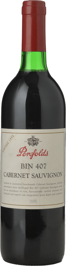 PENFOLDS Bin 407 Cabernet Sauvignon, South Australia 1998 Bottle