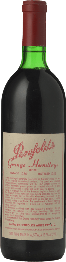 PENFOLDS Bin 95 Grange Shiraz, South Australia 1986 Bottle
