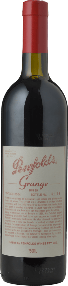 PENFOLDS Bin 95 Grange Shiraz, South Australia 2004 Bottle