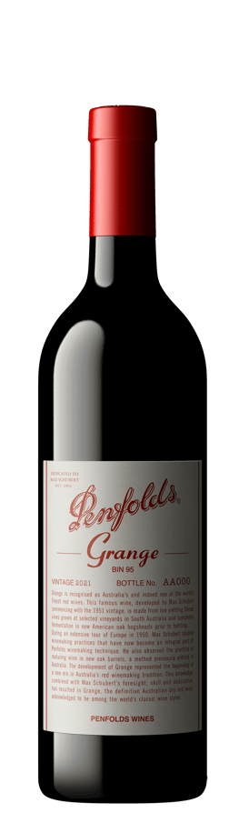 Penfolds Bin 95 Grange Shiraz is Australia's most famous wine with a reputation for superb fruit complexity and flavour richness. An exquisitely perfumed, concentrated wine, Penfolds Bin 95 Grange Shiraz combines the intensely rich fruit and ripe tannins of Shiraz with the fragrance and complementary nuances of new, fine-grained American oak. A portion of Cabernet Sauvignon is used in some years to enhance the aromatics and palate structure.