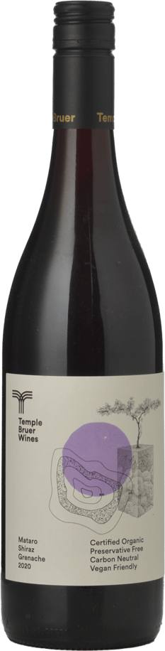 TEMPLE BRUER Certified Organic Preservative Free Vegan Friendly Grenache Shiraz Mataro, Riverland 2020 Bottle